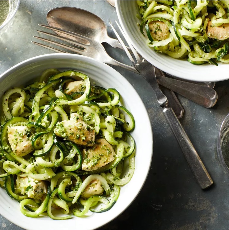 - Zucchini Noodles with Pesto and Grilled Chicken: Swap traditional pasta for zucchini noodles in this light and refreshing dish. Top it with homemade pesto sauce and grilled chicken for a satisfying meal that’s low in calories and high in flavor.